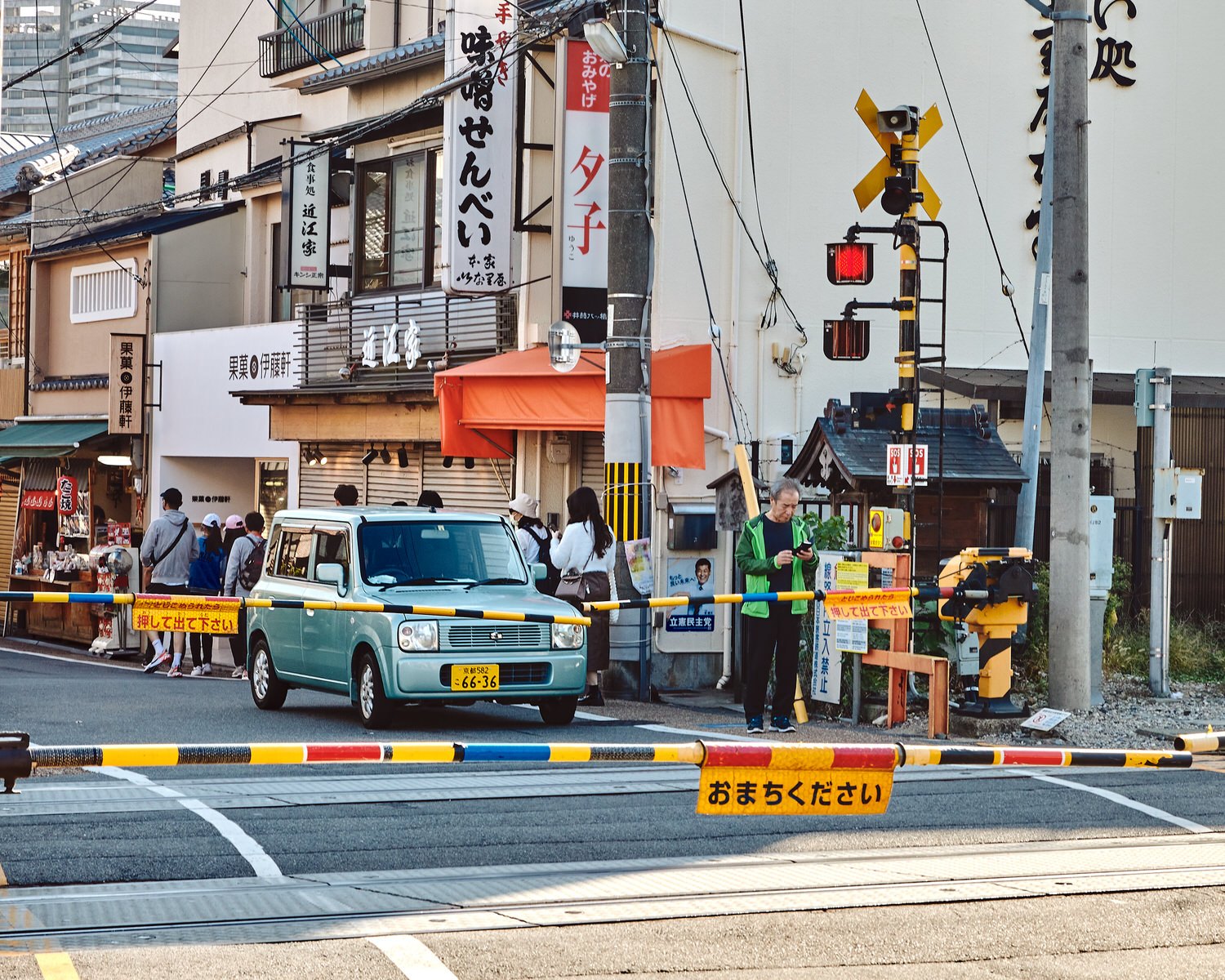 The moment we stepped outside, the scale shifted dramatically. The massive station gave way to much smaller buildings and a more human-sized cityscape. As we headed toward Nishiki Market, the streets gradually narrowed until there was barely room for anything beyond the roadway and storefronts—no trees, no landscaping, just walls of character.