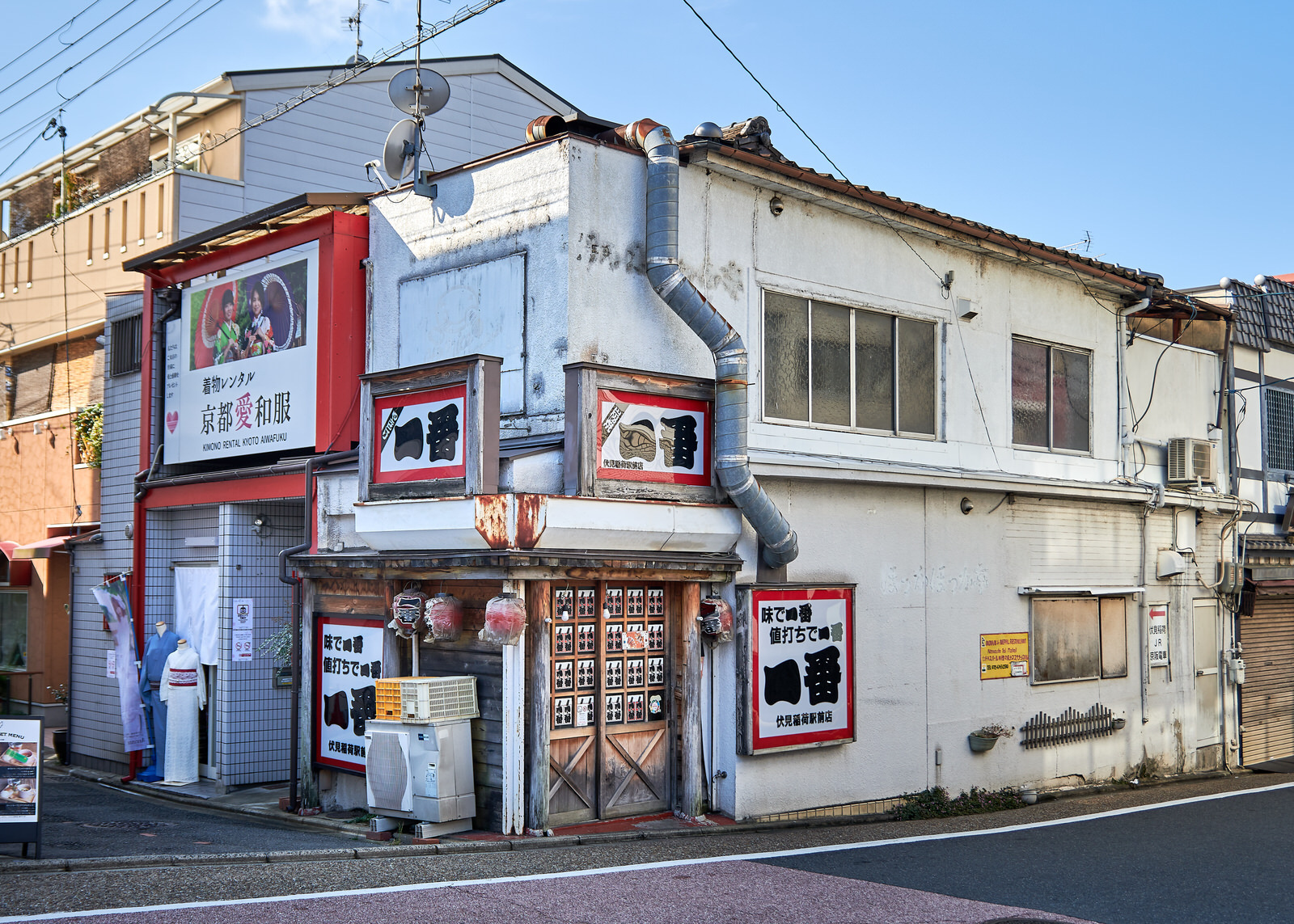 The moment we stepped outside, the scale shifted dramatically. The massive station gave way to much smaller buildings and a more human-sized cityscape. As we headed toward Nishiki Market, the streets gradually narrowed until there was barely room for anything beyond the roadway and storefronts—no trees, no landscaping, just walls of character.