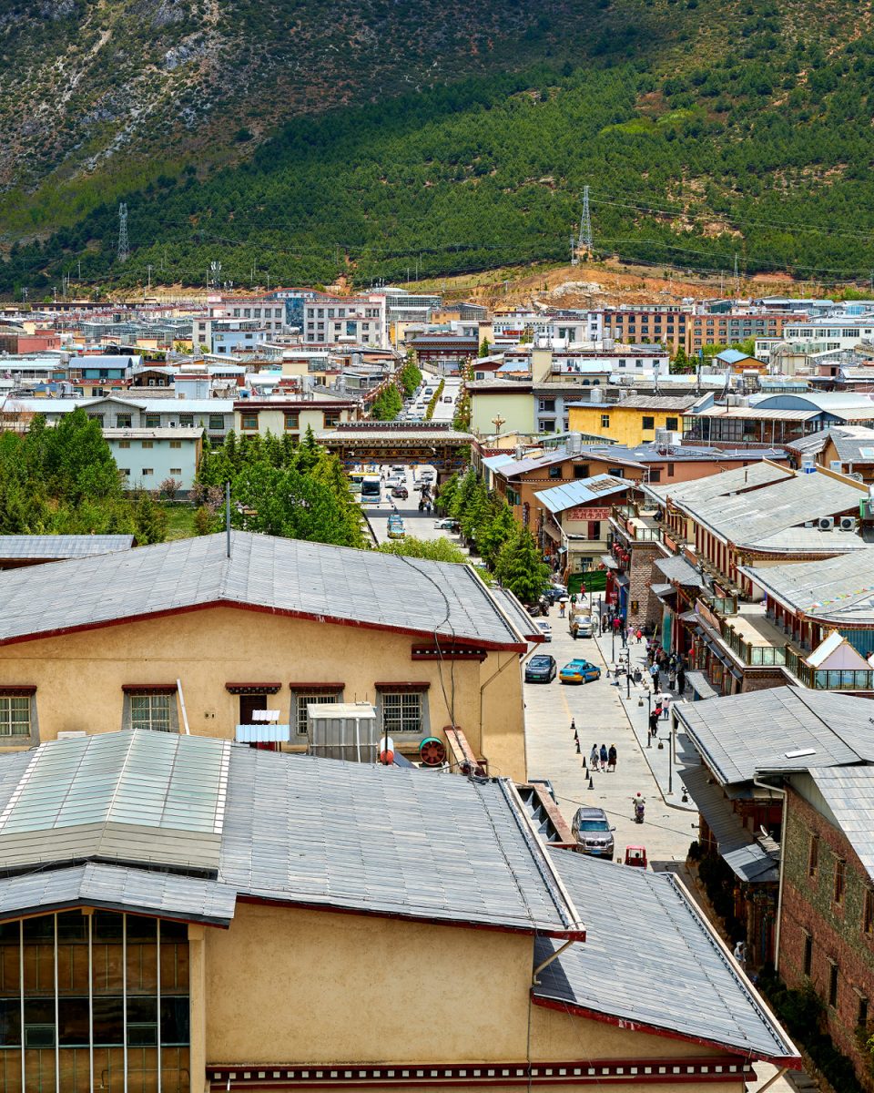 While Dali had a bohemian feel and Lijiang’s ancient town leaned heavily commercial, Shangri-La offered an entirely different atmosphere. It felt less touristy and far more grounded and earthy. The elevation rose dramatically from Lijiang, and the colors intensified along with it. A brilliant blue sky created striking contrast against the golds, reds, and other ornate architectural accents. Visiting Songzanlin Monastery was especially memorable—we passed through prayer rooms where monks gathered, then climbed winding staircases to the top, where we were rewarded with a stunning panoramic view of Shangri-La city.