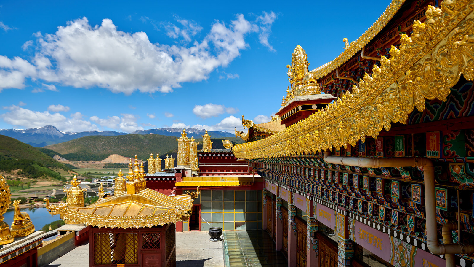 While Dali had a bohemian feel and Lijiang’s ancient town leaned heavily commercial, Shangri-La offered an entirely different atmosphere. It felt less touristy and far more grounded and earthy. The elevation rose dramatically from Lijiang, and the colors intensified along with it. A brilliant blue sky created striking contrast against the golds, reds, and other ornate architectural accents. Visiting Songzanlin Monastery was especially memorable—we passed through prayer rooms where monks gathered, then climbed winding staircases to the top, where we were rewarded with a stunning panoramic view of Shangri-La city.